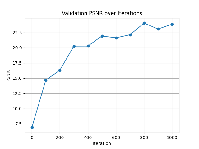 Built a dataloader to randomly sample pixel coordinates and colors for efficient training.